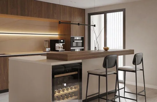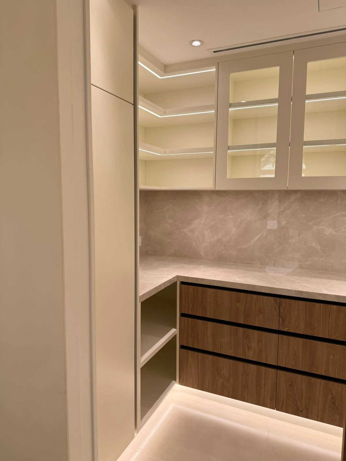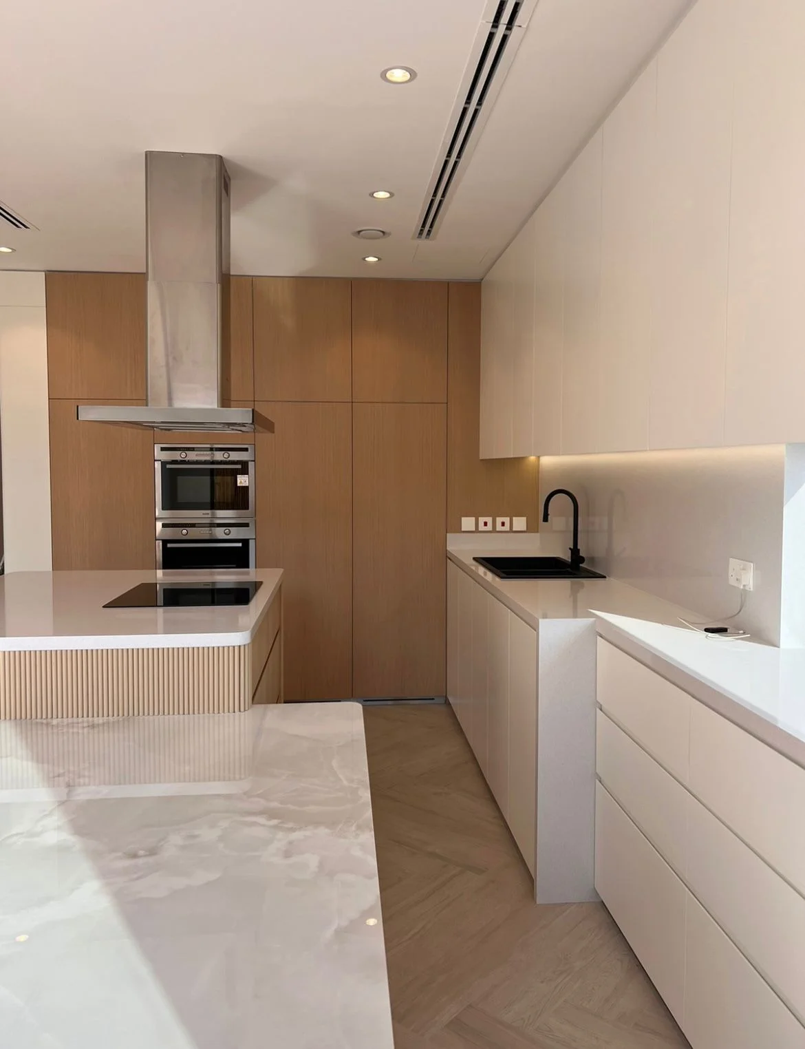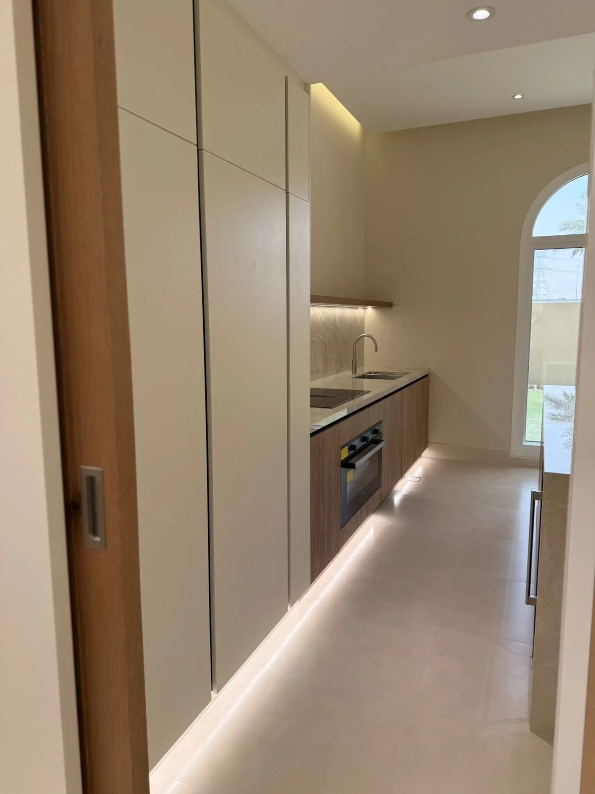 Designed for urban families, the Dubai Hills interiors focus on clean lines and functional layouts. From custom kitchens to elegant living areas, every corner reflects balance, style, and comfort. Sleek joinery, neutral tones, and modern finishes create a contemporary yet inviting environment.