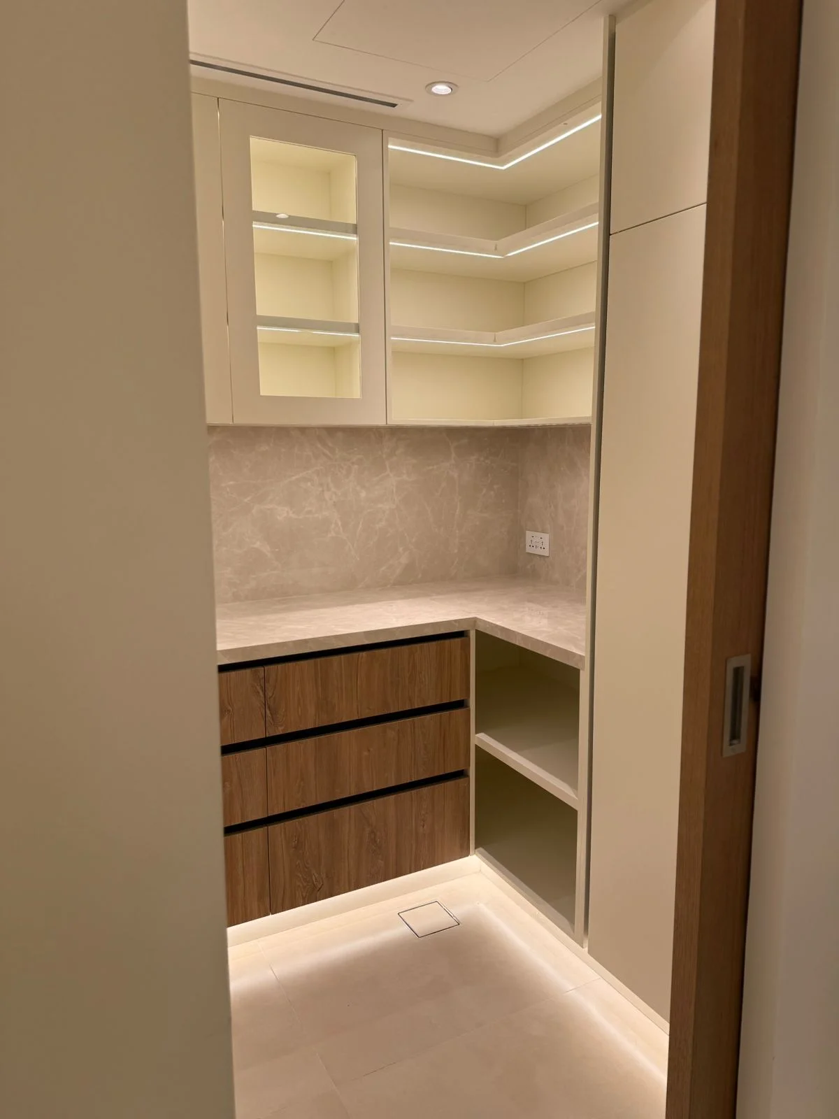 Our Jumeirah Golf project is a true reflection of modern luxury living. Spacious layouts, warm palettes, and bespoke furniture bring elegance into every room. With carefully designed lighting schemes and premium finishes, this villa interior showcases the excellence of our interior designing services, offering both comfort and grandeur.